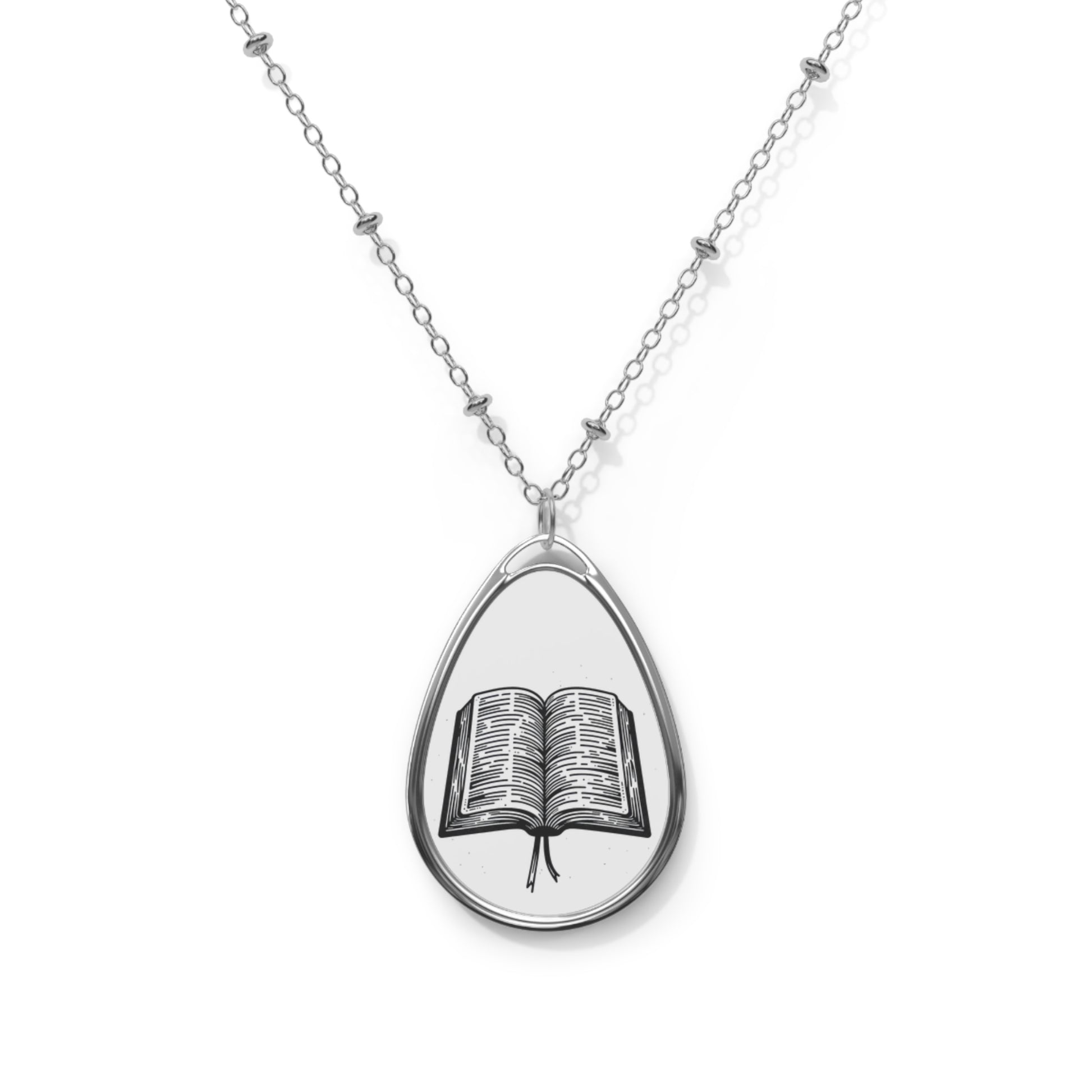 Inspirational Oval Necklace with Open Book Design, Faith Jewelry, Gift for Readers, Graduation Gift, Book Lover Necklace